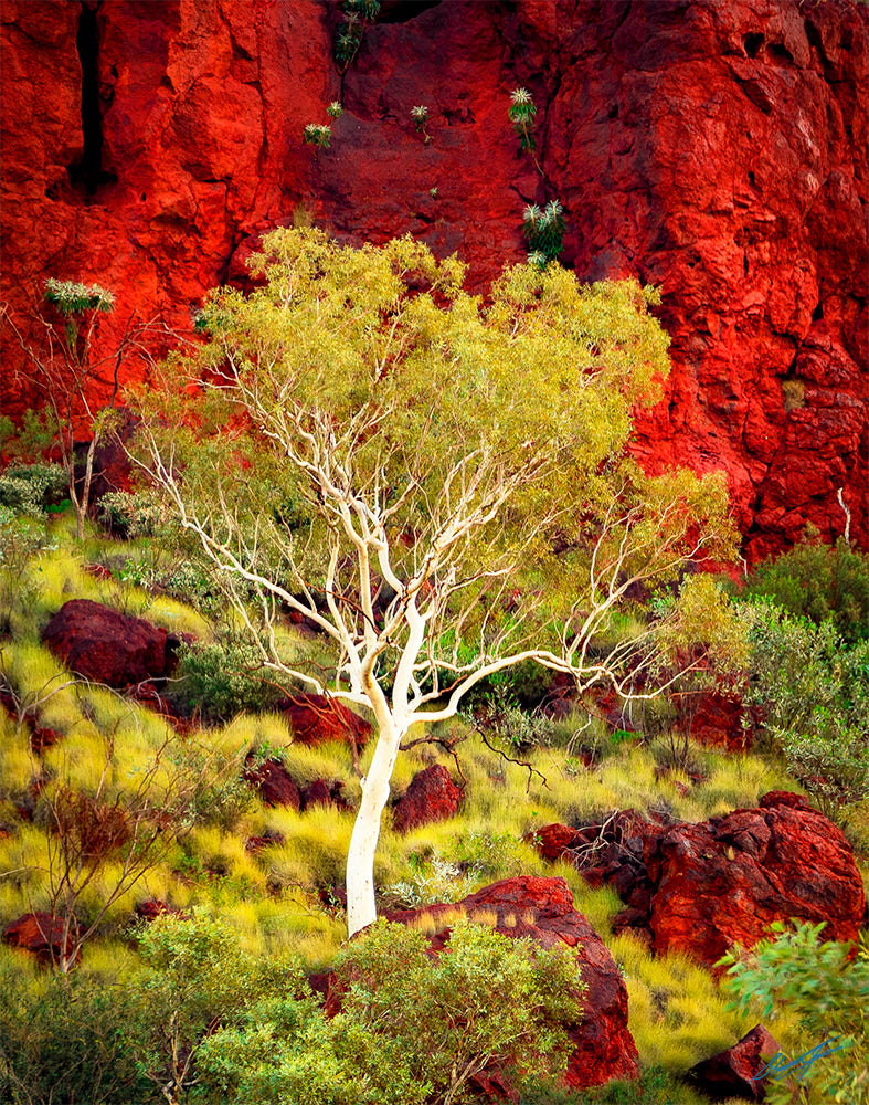 The Pilbara region is rich in colour pretty much all year round with deep orange rock faces to white gum trees, red tracks and the wandering dingo. This was shot outside of Tom Price at the foot of Mt Nameless.